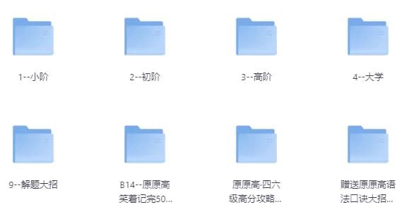 词汇学习方面,按 “小阶(351 必考词)、初阶(531 必考词)、高阶(688 必考词)、大学(词根前缀)” 分级,还含 “笑着记完 5000 词” 专项,分主题或字母系列教学;语法板块设初级篇(句型、成分等)、中高级篇(定从、名从等)及对应实战练习;另有针对初高大学的解题大招,如初中语法填空口诀、大学阅读技巧,搭配四六级高分攻略(读写译听专项),并提供丰富电子版资料与赠送讲义,形成 “学练考” 一体化英语学习资源。