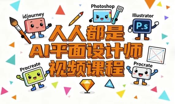 《人人都是AI平面设计师》是一套系统化的视频课程,旨在帮助学员掌握如何利用AI工具(Midjourney、Photoshop、Illustrator、Procreate等)提升设计效率。